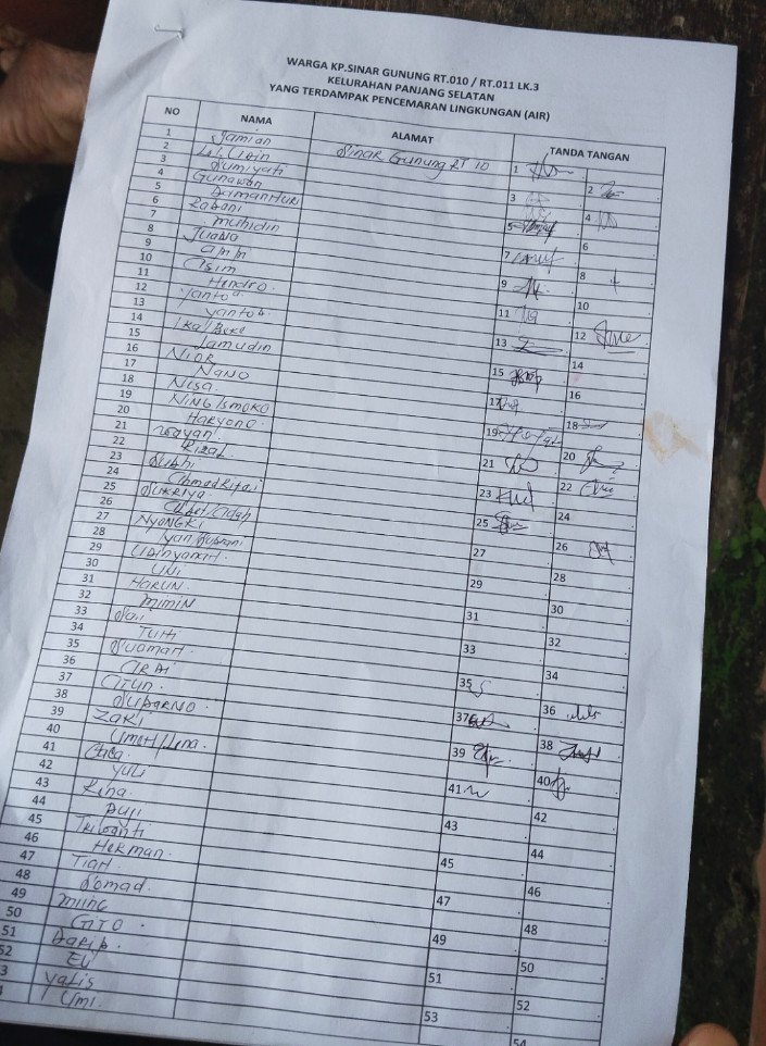 “Saya sudah cek lokasi kerumah-rumah dipanjang selatan.Air dalam bak mandi masyarakat kuning lengket tidak bisa digunakan untuk mandi dan mencuci.” ungkapnya.