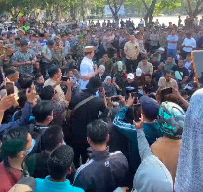 Langkah tersebut diambil untuk mendengarkan secara langsung aspirasi masyarakat. Di hadapan pejabat daerah, pendemo menyuarakan tuntutan mereka dengan pengawalan aparat keamanan.
