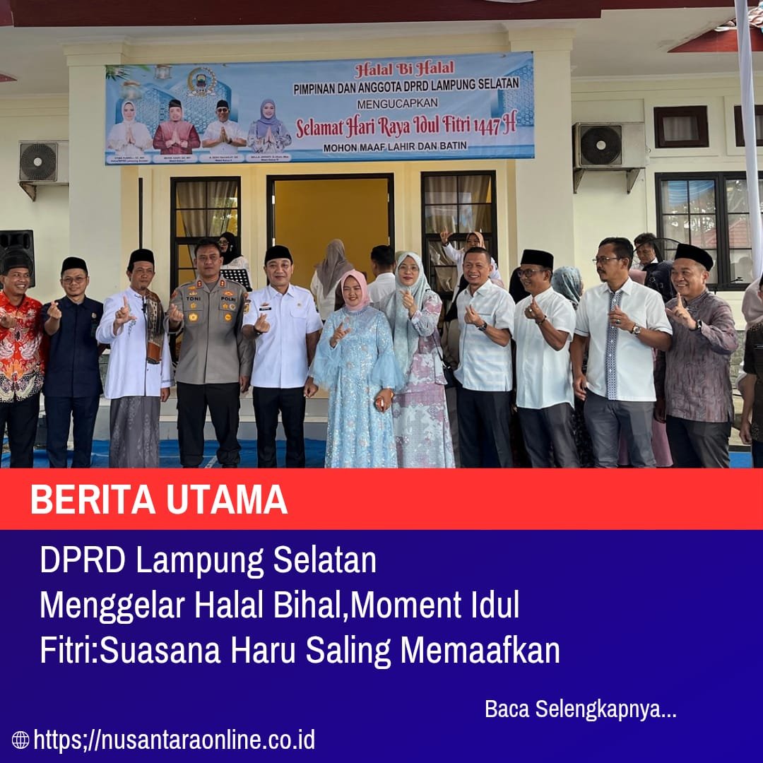 NUSANTARAONLINE.CO.ID-Dewan Perwakilan Rakyat Daerah (DPRD) Lampung Selatan menggelar kegiatan open house dan halal bihalal dalam rangka mempererat silaturahmi pasca Hari Raya Idulfitri 1447 Hijriah, yang dipusatkan di halaman Rumah Dinas Ketau DPRD setempat. Rabu (1/4/2026)