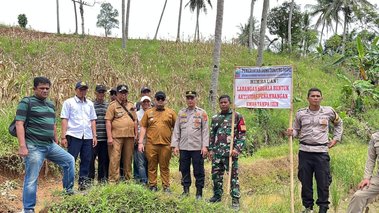 Sebelumnya Uspika kecamatan merbau mataram Lampung selatan pada tanggal 9 September 2025 (Uspika Merbau Mataram) beberapa bulan lalu sempat turun kelokasi pertambangan emas dan memasang plang banner.Dilokasi dipasang Plang Banner bertuliskan himbauan larangan segala bentuk aktivitas penambangan emas ilegal tanpa izin.